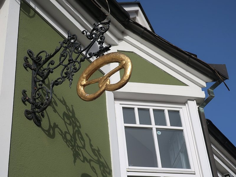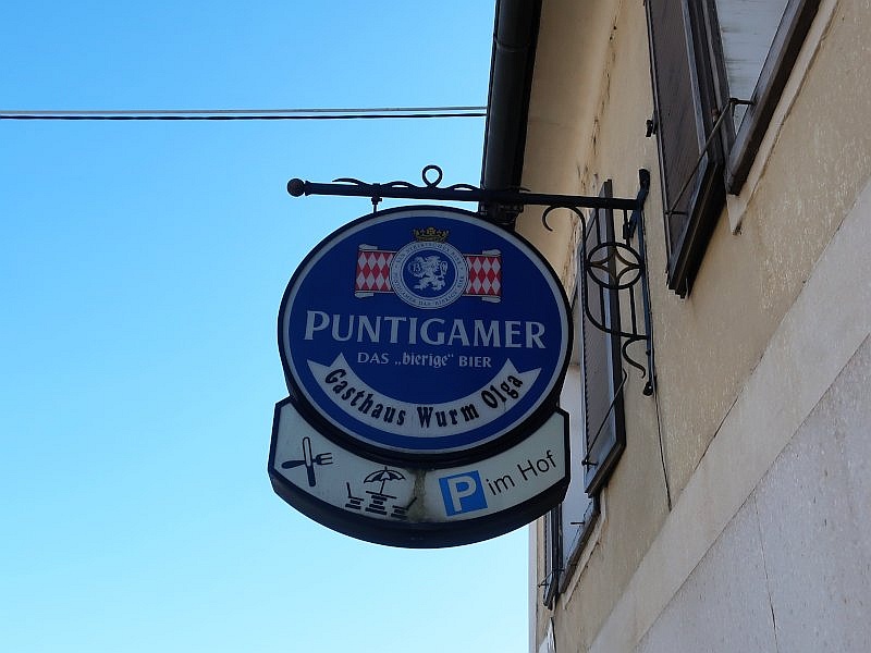 von Martin KruscheFür unser Thema ist es interessant, wie traditionelle Zeichen, die einen Betrieb kennzeichnen, über verschiedene formale Schritte in der Gegenwart ankamen und heute als Artefakte der Reklame in kontrastreichen Varianten zu finden sind. Der Fachbegriff „Nasenschild“ meint Zeichen, die an einem Arm hängen, der an Hauswände montiert ist und in den Weg der Passanten ragt. Solche Ausleger sind aus der Geschichte zum Beispiel als Zunftzeichen oder Wirtshausschilder überliefert. Auch der Buschenschank wurzelt als Begriff in einem ähnlichen Zusammenhang, daß nämlich bei einem bäuerlichen Betrieb ein „Busch“ (Strohbündel, Strohkranz) an einem Ausleger „ausg’steckt“ ist, was bedeutet, es werden Produkte aus eigener Produktion ausgeschenkt und aufgetischt.(Alle Fotos: Martin Krusche)