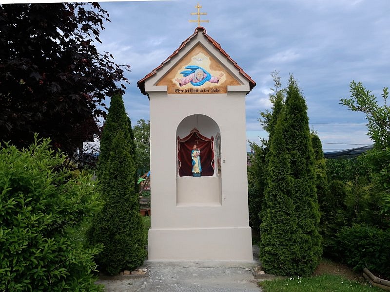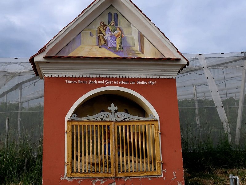 Auf dem Weg vorbei unter der Buschenschank Maurer finden Sie nach Gleisdorf zurück und werden dabei ein paar sehr ansehnlich Exponate sehen. Vor allem der Breitpfeiler mit seiner liegenden Christusfigur, also einer Szene nach der Kreuzabnahme, beeindruckt. Ich kenne im Raum Gleisdorf kein vergleichbare Arbeit.