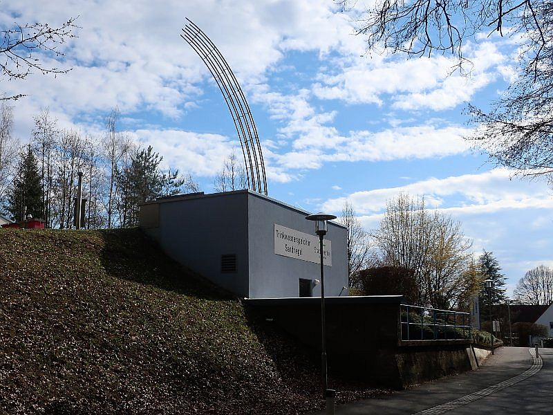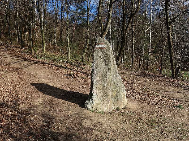 Schließlich zeigt der Trinkwasserspeicher der Stadtwerke einige markante Momente. Interessant der Felsbrocken mit der Markierung für Wanderer, dem bloß die Löcher fehlen, um ihn für einen alten Gatterstein zu halten.