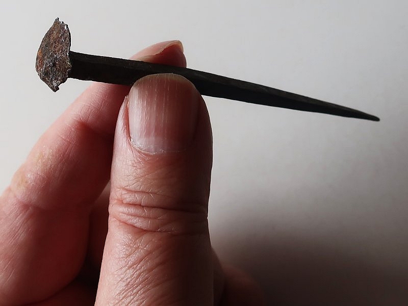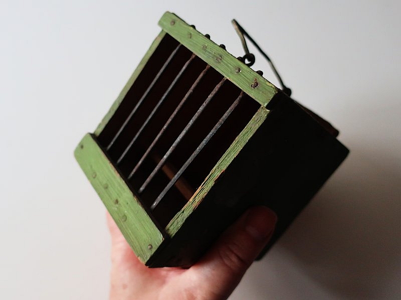 von Martin KruscheDie Artefakte der dritten Episode im Slot II. Der Schmiedenagel (anonyme Quelle), der Vogelkäfig (anonyme Quelle), die Wollsocken (Andrea Habeler), der Miniaturpanzer (anonyme Quelle) und Crossover: der WiGL-Puch (WiGL Design). (Alle Fotos: Martin Krusche)