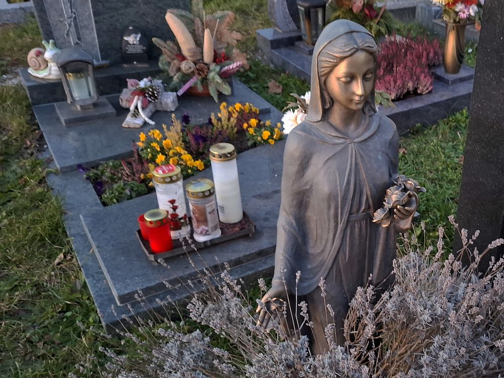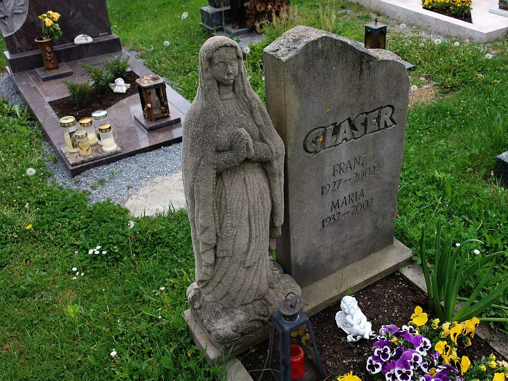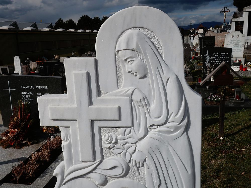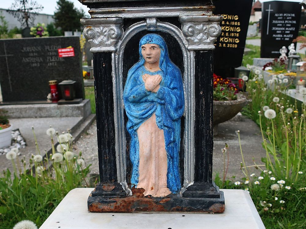 Von diesem Teil der Betrachtung habe ich den Gekreuzigten natürlich ausgenommen. Jesus ist bei den Gräbern das dominante Symbol in der Darstellung eines Gottesbildes. Bei seiner Mutter verhält es sich ein wenig anders. Sie ist an der Schwelle zwischen hüben und drüben tätig.
