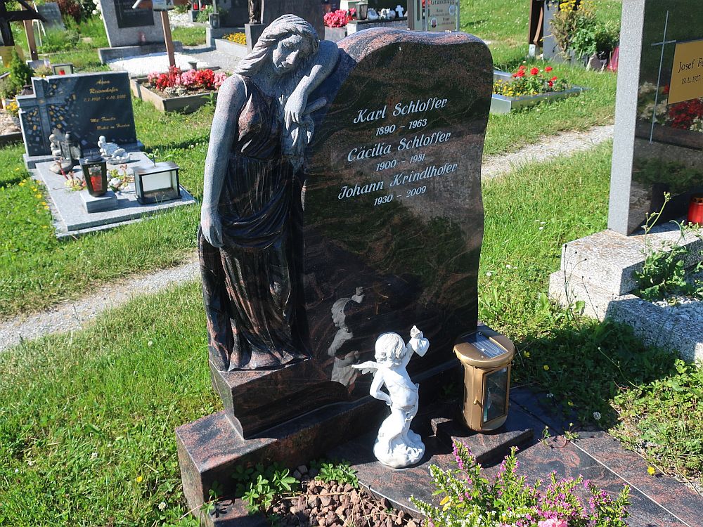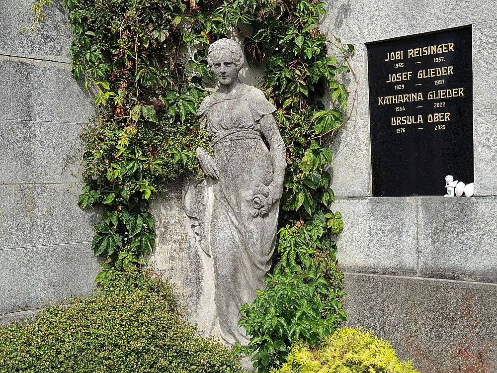 Schließlich Frauenfiguren als begleitende Wesen, gewissermaßen als Allegorien der Trauer, vielleicht auch als Tröstende für die Toten, somit in einer deutlich emotionalen Funktion auf den Übergängen zwischen Diesseits und Jenseits. (Friedhof Gleisdorf)