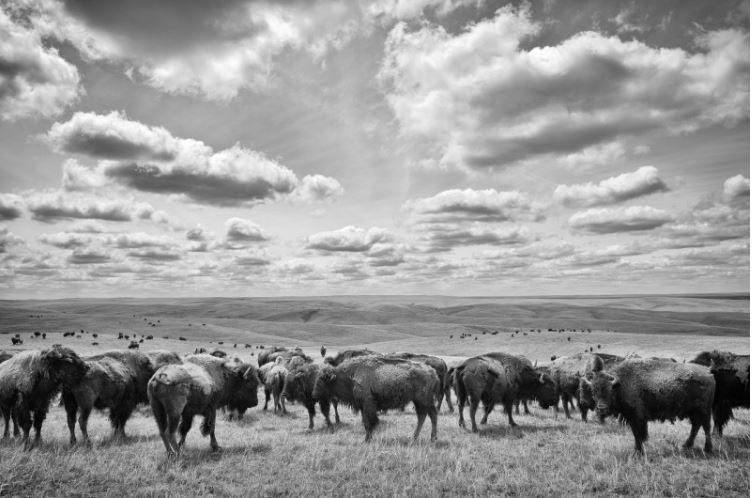 Die Ausstellung „Buffalo Ballad“ ist die visuelle Spurensuche im Herzen des Bisonlandes nach dem Geist und Mythos der amerikanischen Ikone. Wahrscheinlich zogen 30 Millionen Bisons im 16. Jahrhundert über die Grasebenen zwischen Kanada und Mexiko und von den Rocky Mountains bis zum Mississippi. Mit der Besiedlung des amerikanischen Mittelwestens wurde in weniger als zwei Jahrzehnten fast die gesamte Population vernichtet. Niemals zuvor haben Menschen in einem so kurzen Zeitraum so viele Tiere getötet. Theodor Roosevelt schickte die Kavallerie, um die letzten ihrer Art zu bewachen. Er wurde zum Urvater des US-Naturschutzes.
