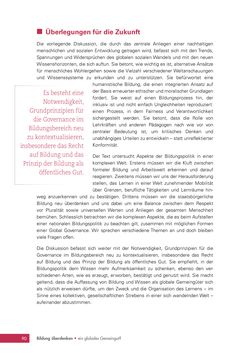 auf Bildung und das Prinzip der Bildung als öffentliches Gut. Sie empfiehlt, in der