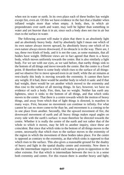 evidence of such a body. Fire, then, has no weight. Neither has earth any