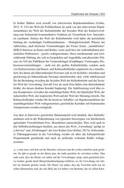 - 7.4 Die Soziale Welt der MitarbeiterInnen der städtischen Kulturverwaltung 242