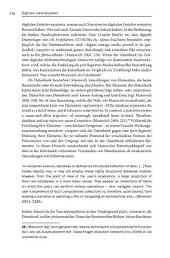 der. Daher hat eine Datenbank auch keinen Anfang und kein Ende (vgl. Manovich