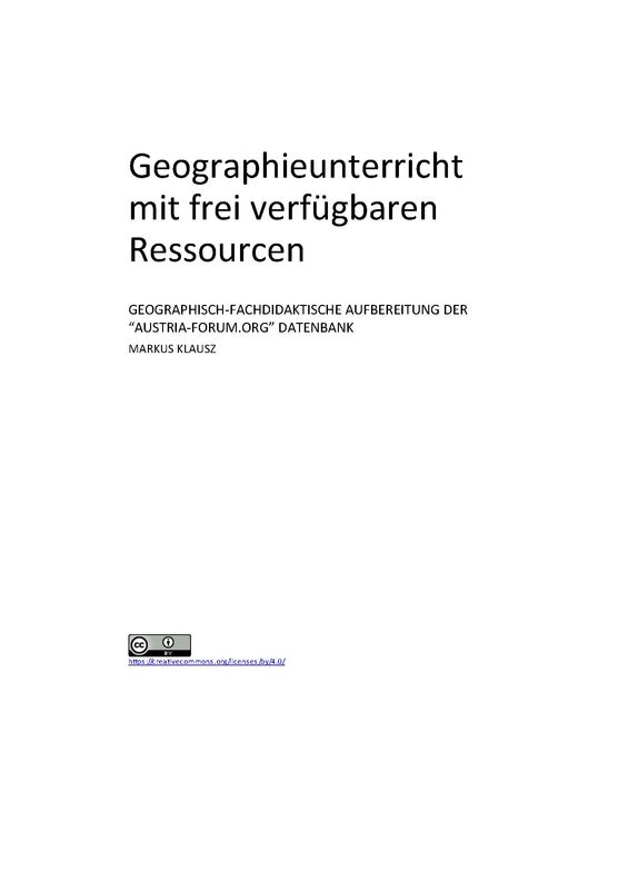 Geographieunterricht mit frei verfügbaren RessourcenGeographisch-Fachdidaktische Aufbereitung der "Austria-Forum.org" Datenbank