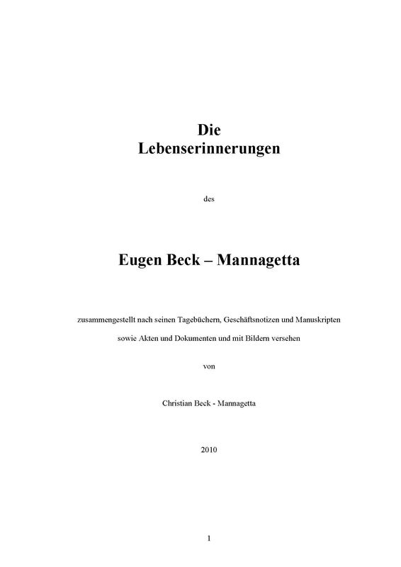 Die Lebenserinnerungen des Eugen Beck - Mannagettazusammengestellt nach seinen Tagebüchern, Geschäftsnotizen und Manuskripten sowie Akten und Dokumente und mit Bildern versehen