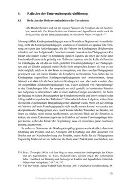 rung, nicht als Kindergartenpädagogin, sondern als Forscherin zu agieren. Die Tren-