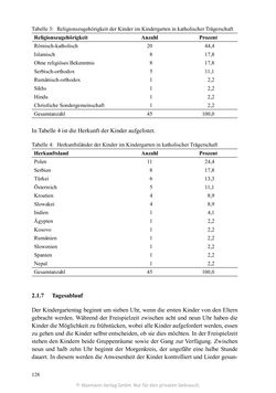 Seite - 128 - in Umgang mit religiöser Differenz im Kindergarten - Eine ethnographische Studie an Einrichtungen in katholischer und islamischer Trägerschaft