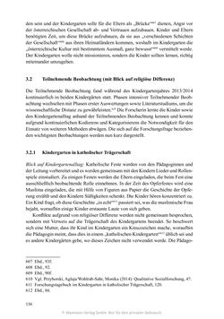 Seite - 136 - in Umgang mit religiöser Differenz im Kindergarten - Eine ethnographische Studie an Einrichtungen in katholischer und islamischer Trägerschaft