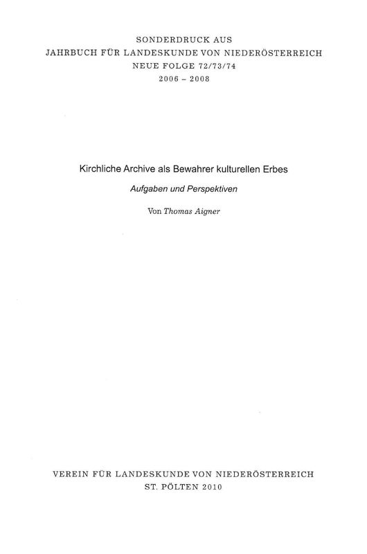 Kirchliche Archive als Bewahrer kulturellen ErbesAufgaben und Perspektiven
