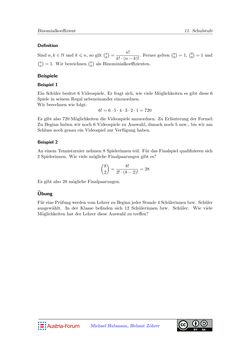 ·(n−k)!. Ferner gelten (n0)=1, (00)=1