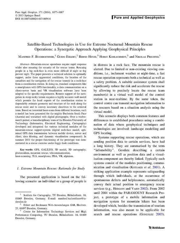 Satellite-Based Technologies in Use for Extreme Nocturnal Mountain Rescue Operations: a Synergetic Approach Applying Geophysical Principles