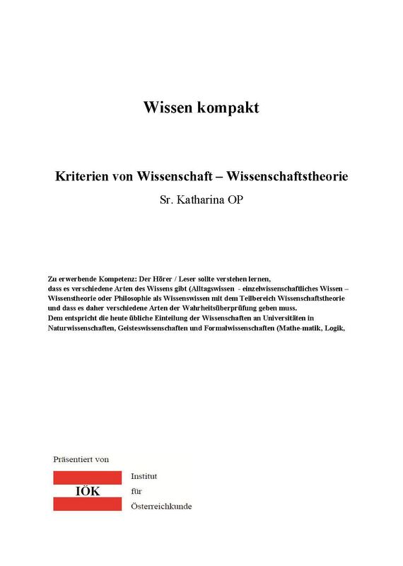 Wissen kompaktKriterien von Wissenschaft – Wissenschaftstheorie