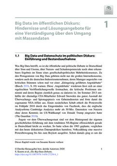 - 1 Big Data im öffentlichen Diskurs: Hindernisse und Lösungsangebote fĂŒr eine VerstĂ€ndigung ĂŒber den Umgang mit Massendaten 1