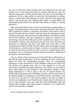 faculty, and anatomically by certain parts; essentially the male is that which is