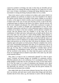 Therefore pleasure also is not continuous; for it accompanies activity. Some