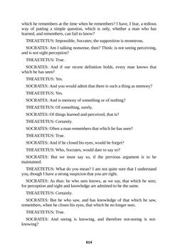 SOCRATES: Am I talking nonsense, then? Think: is not seeing perceiving,