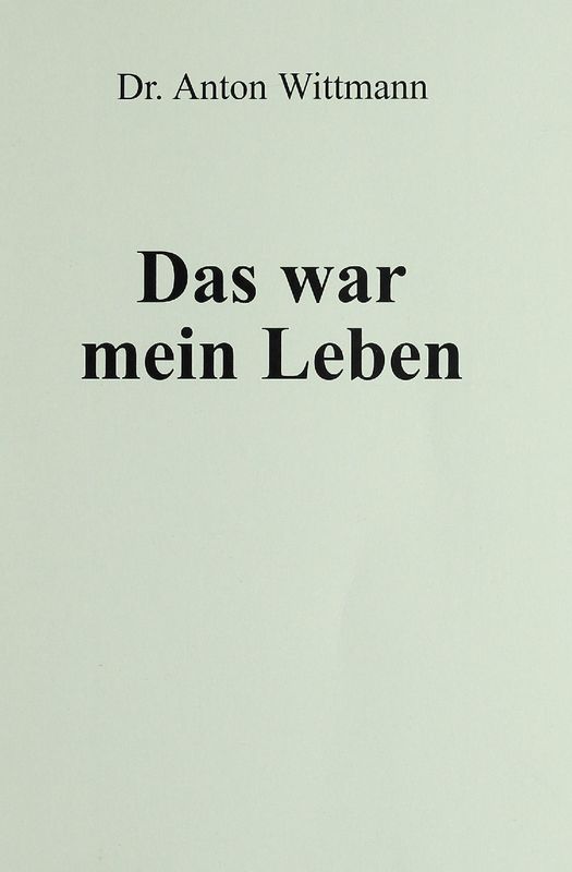 Das war mein Leben Cover Cover of the book 'Das war mein Leben' read in the book now Read read in the book now Metadata and description Title Das war mein Leben Author Anton Wittmann Date 2011 Language German Size 9.6 x 14.6 cm Pages 74 Category Biographien Read read in the book now You are not allowed to reuse or distribute parts (text and images) of the Web-Books without explicit permission.
