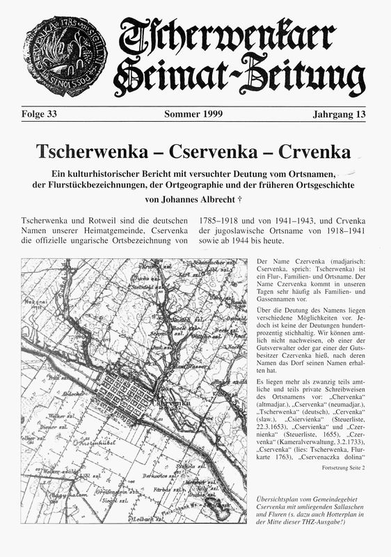 Tscherwenkaer Heimat-ZeitungTscherwenka - Cservenka - Crvenka, Volume 33