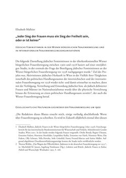 - „Jeder Sieg der Frauen muss ein Sieg der Freiheit sein, oder er ist keiner“ Jüdische Feministinnen in der Wiener bürgerlichen Frauenbewegung und in internationalen Frauenbewegungsorganisationen 277