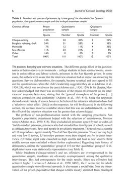 Table 1. Number and quotas of prisoners by ‘crime group’ for the whole San Quentin