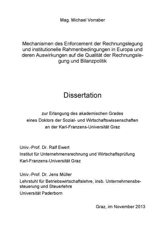 - Mechanismen des Enforcement der Rechnungslegung und institutionelle Rahmenbedingungen in Europa und deren Auswirkungen auf die Qualität der Rechnungslegung und Bilanzpolitik