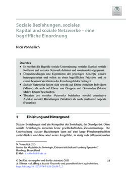 - Theoretische und methodische GrundlagenSoziale Beziehungen, soziales Kapital und sozialeNetzwerke – eine begriffliche Einordnung 33