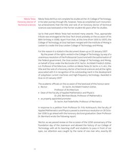 - Nikola Tesla: Honorary doctor of technical sciences 28